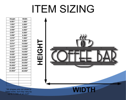Custom Metal Coffee Bar Wall Art | Indoor Outdoor | Up to 46" | 20+ Color Options