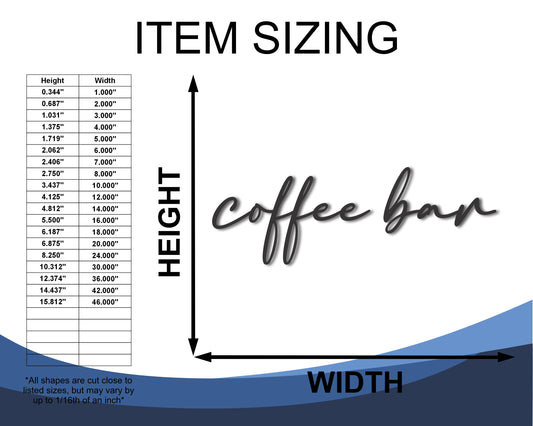 Custom Metal Coffee Bar Script Wall Art | Indoor Outdoor | Up to 46" | 20+ Color Options