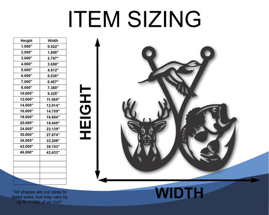Custom Metal Hunting and Fishing Wall Art | Indoor Outdoor | Up to 46" | 20+ Color Options