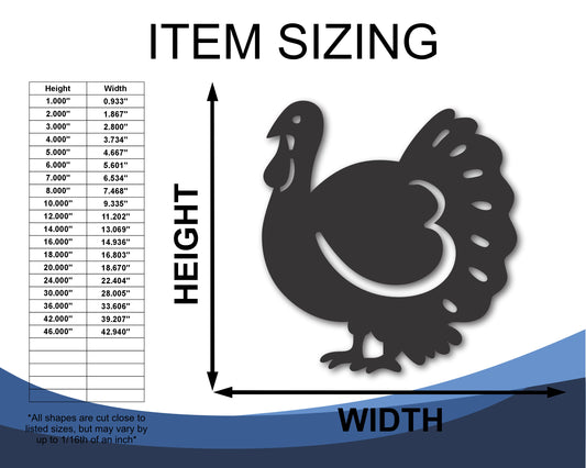 Custom Metal Turkey Wall Art | Indoor Outdoor | Up to 46" | 20+ Color Options