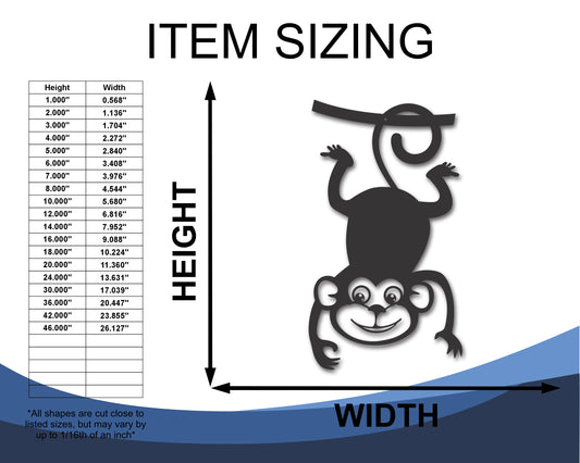Custom Metal Monkey Wall Art | Indoor Outdoor | Up to 46" | 20+ Color Options