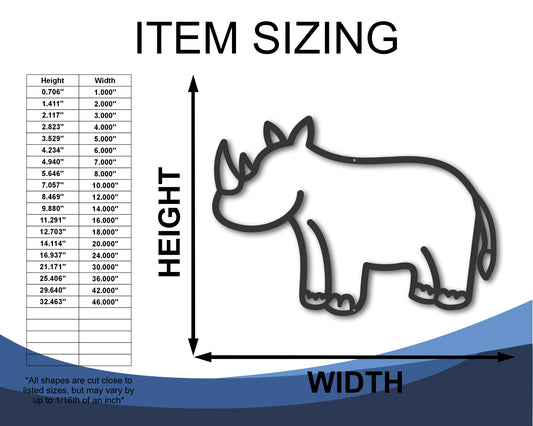 Custom Metal Rhinoceros Outline Wall Art | Indoor Outdoor | Up to 46" | 20+ Color Options