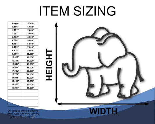 Custom Metal Elephant Outline Wall Art | Indoor Outdoor | Up to 46" | 20+ Color Options