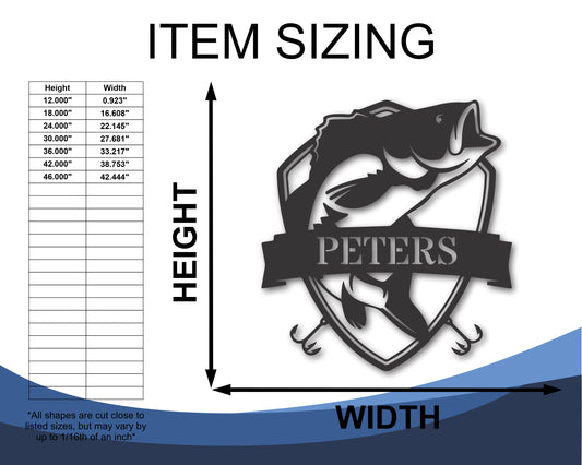 Custom Metal Bass Fish Wall Art | Indoor Outdoor | Up to 46" | 20+ Color Options