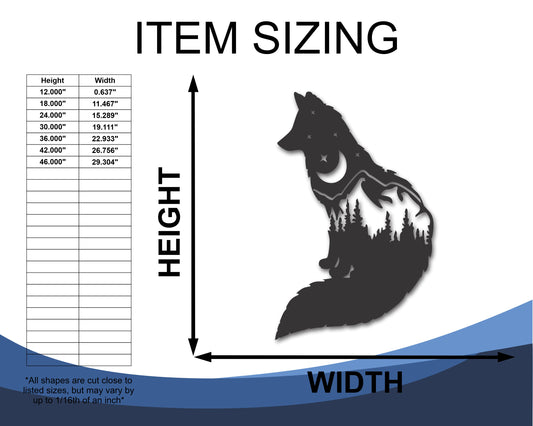 Metal Fox Mountain Landscape Wall Art | Metal Fox and Mountains Wall Decor | 15 Color Options