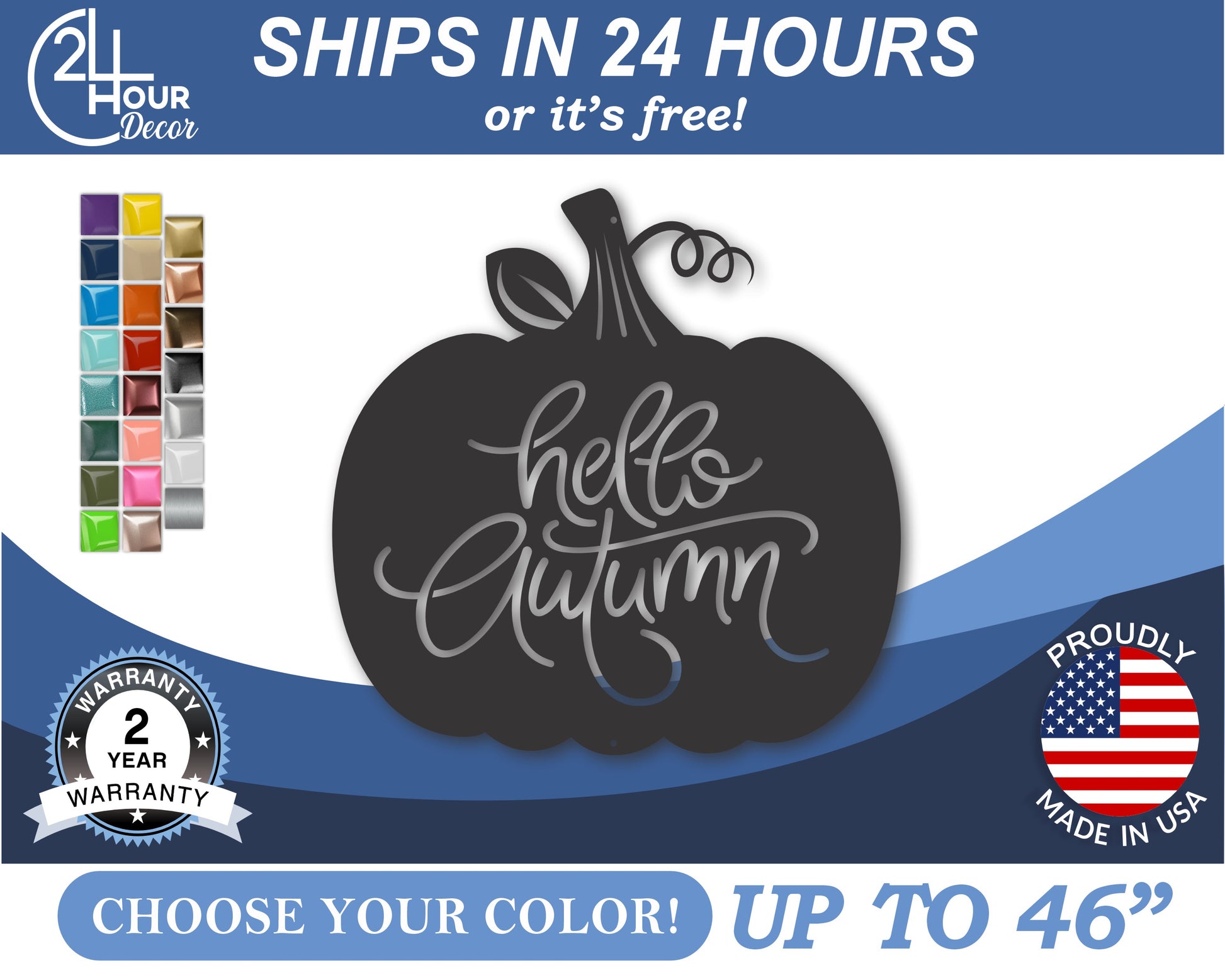 Custom Metal Hello Autumn Pumpkin Wall Art | Indoor Outdoor | Up to 46" | 20+ Color Options
