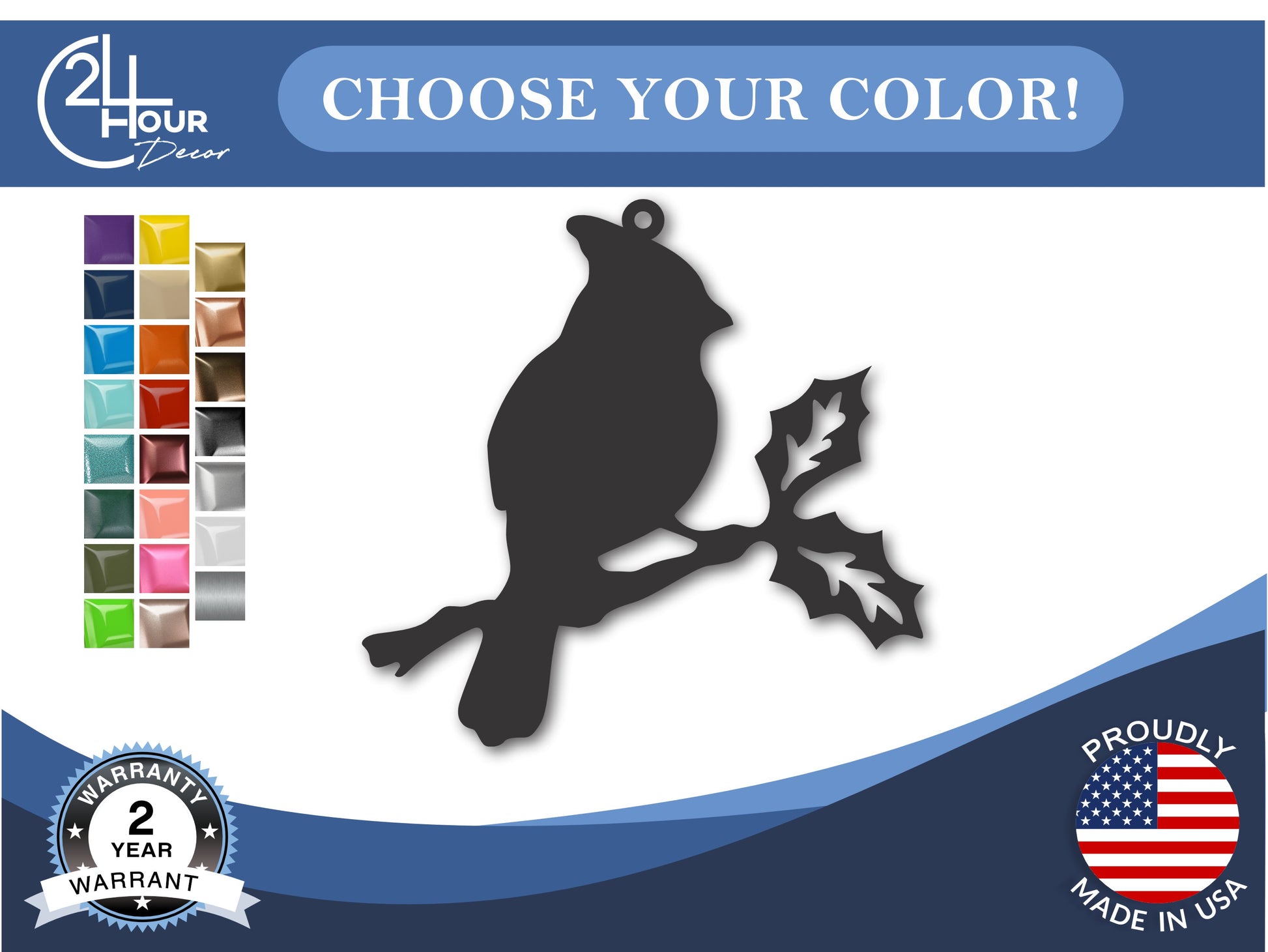 Custom Metal Cardinal Ornament | 4" to 5" | State Ornaments | 20+ Color Options