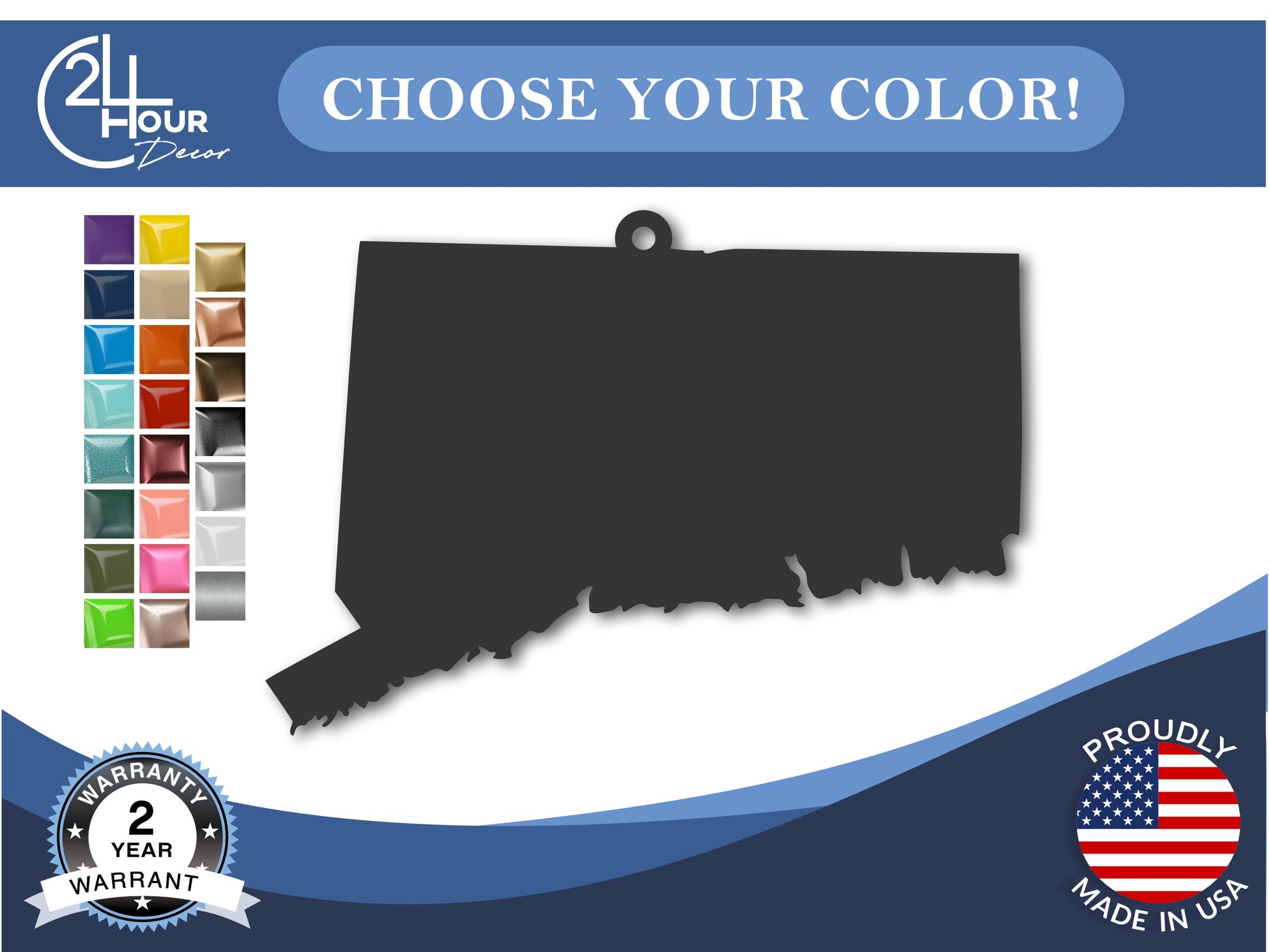 Custom Metal Connecticut State Ornament | 4" to 5" | State Ornaments | 20+ Color Options