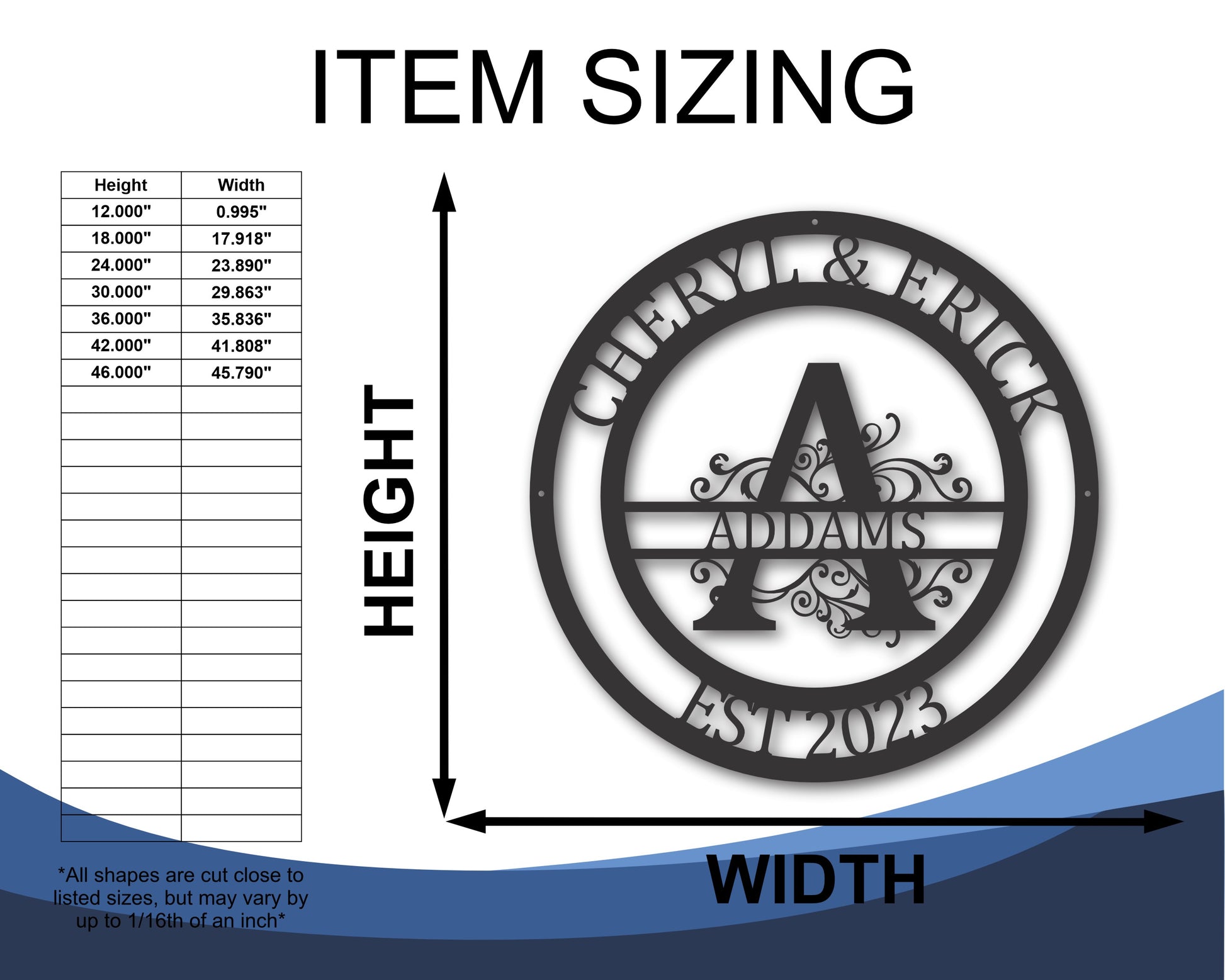 Size Options: Crafted with precision and attention to detail, this monogram sign is available in various sizes, ranging from 12 inches to an impressive 46 inches, allowing you to find the perfect fit for your desired display.