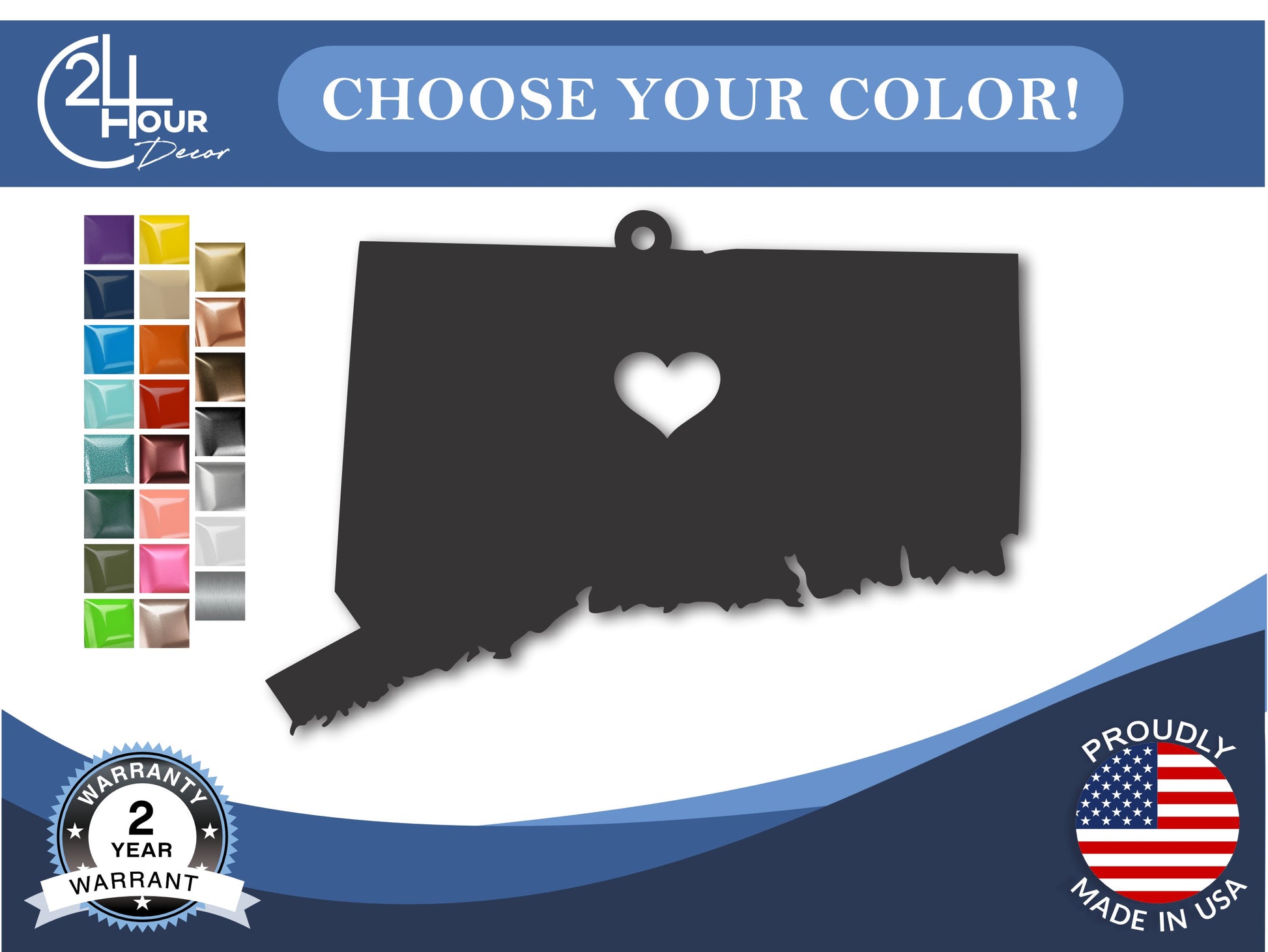 Custom Metal Hartford Connecticut State Ornament | 4" to 5" | State Ornaments | 20+ Color Options