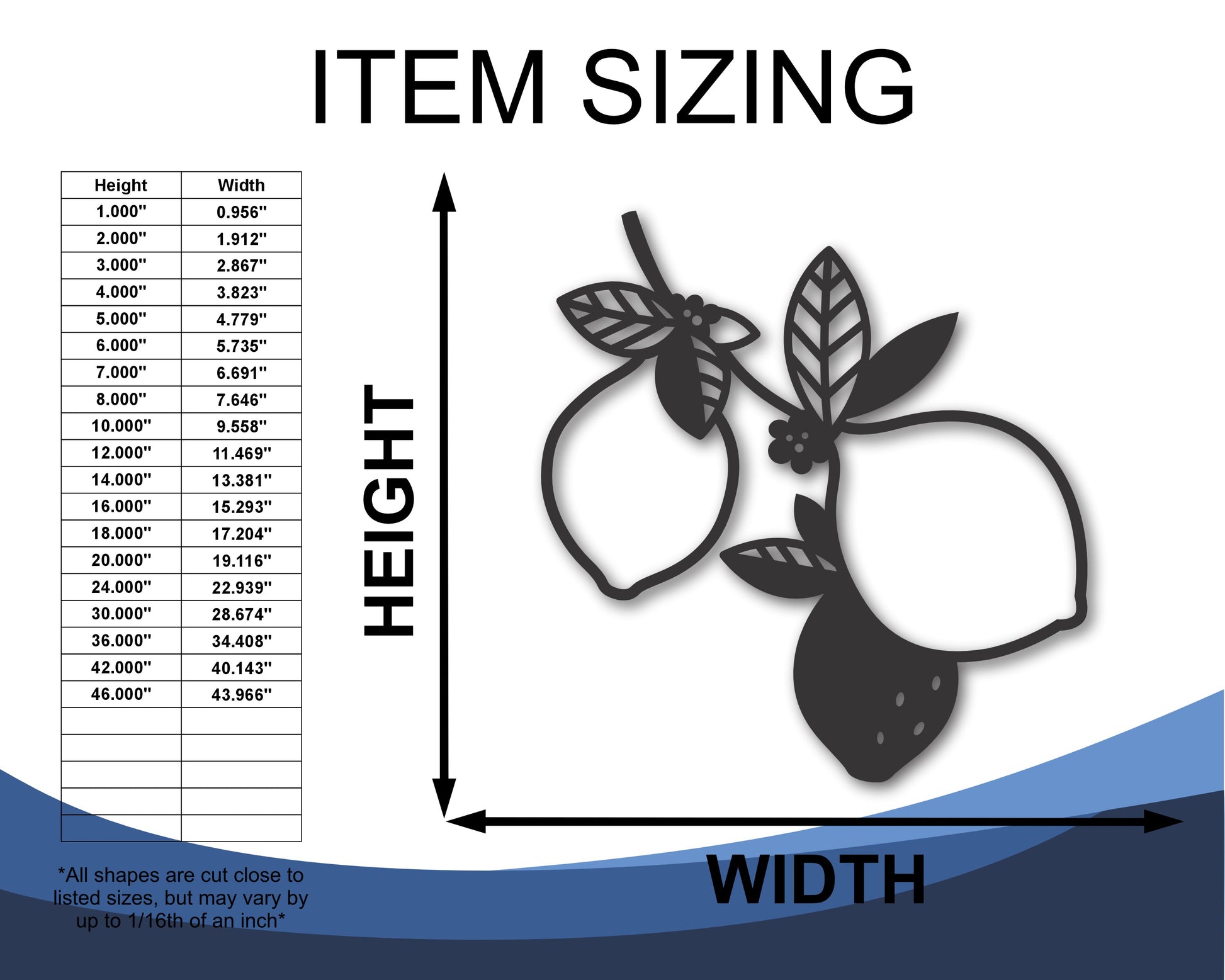 Custom Metal Lemons Wall Art | Indoor Outdoor | Up to 46" | 20+ Color Options