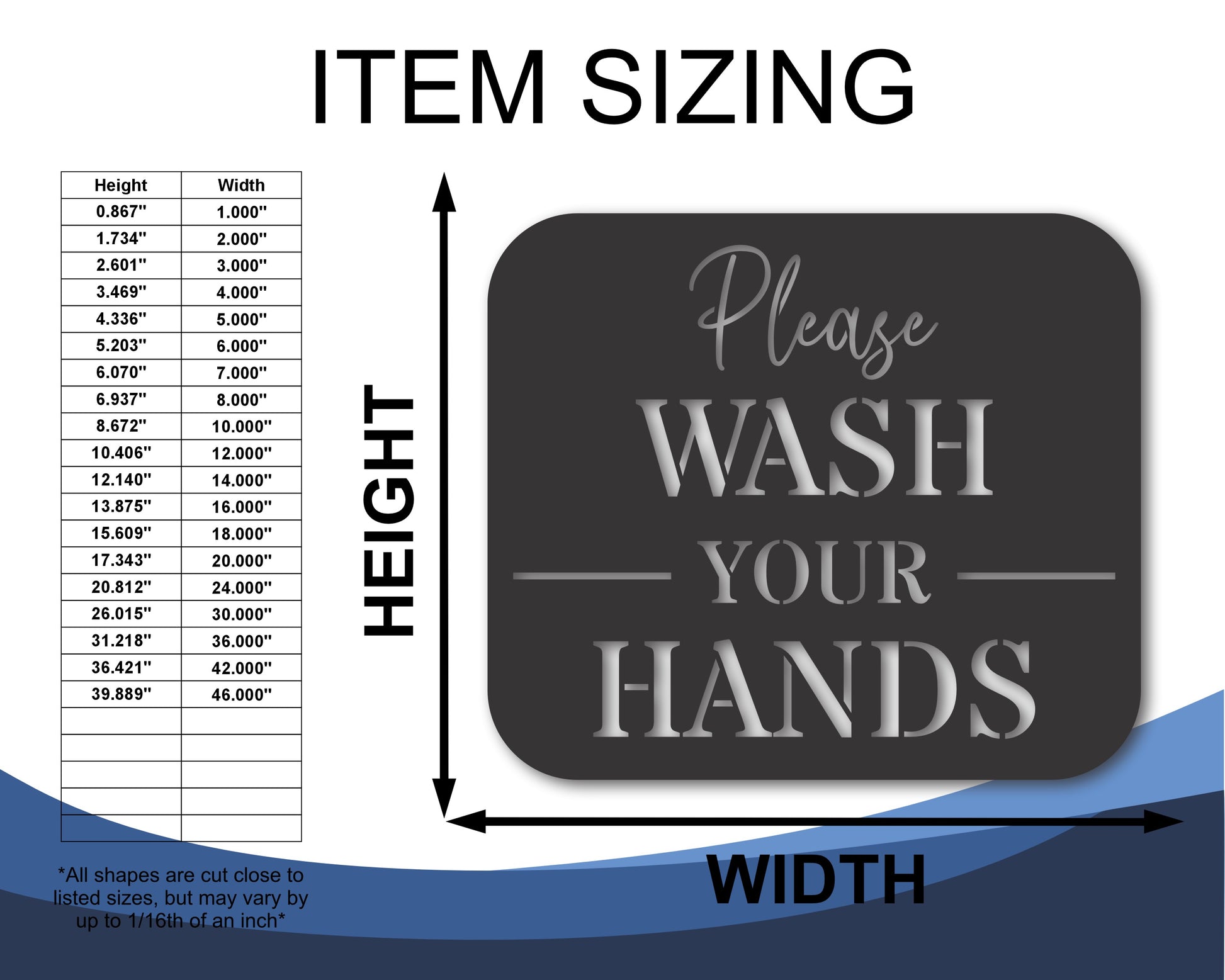 Custom Metal Please Wash Your Hands Wall Art | Indoor Outdoor | Up to 46" | 20+ Color Options